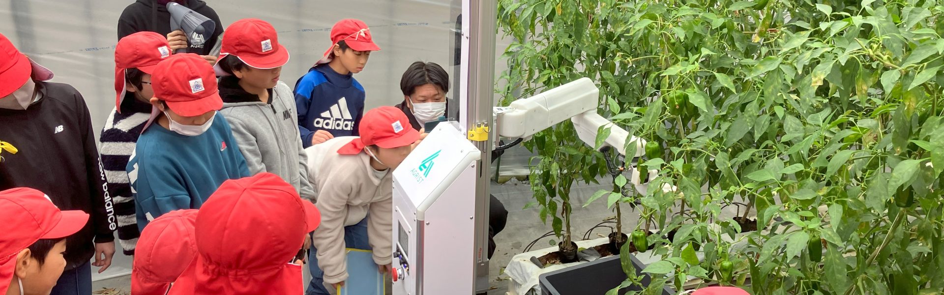 当日は、AGRISTのスマート農場の見学だけでなく、フルーツパプリカの試食、遠隔操作体験を行いました。子どもたちはロボットや、農場について興味津々に質問してくれました。